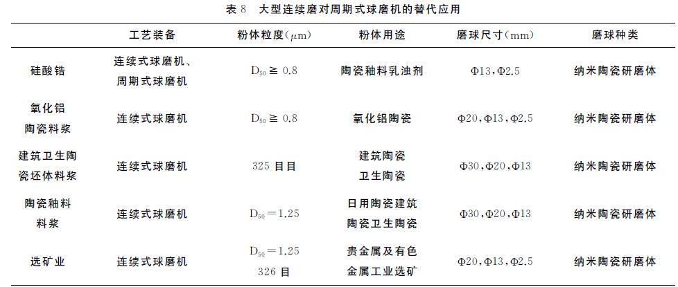基于節能和節省人工方面而進行的大型連續磨對周期式球磨機的替代應用,大型連續磨對周期式球磨機的替代應用見表8。